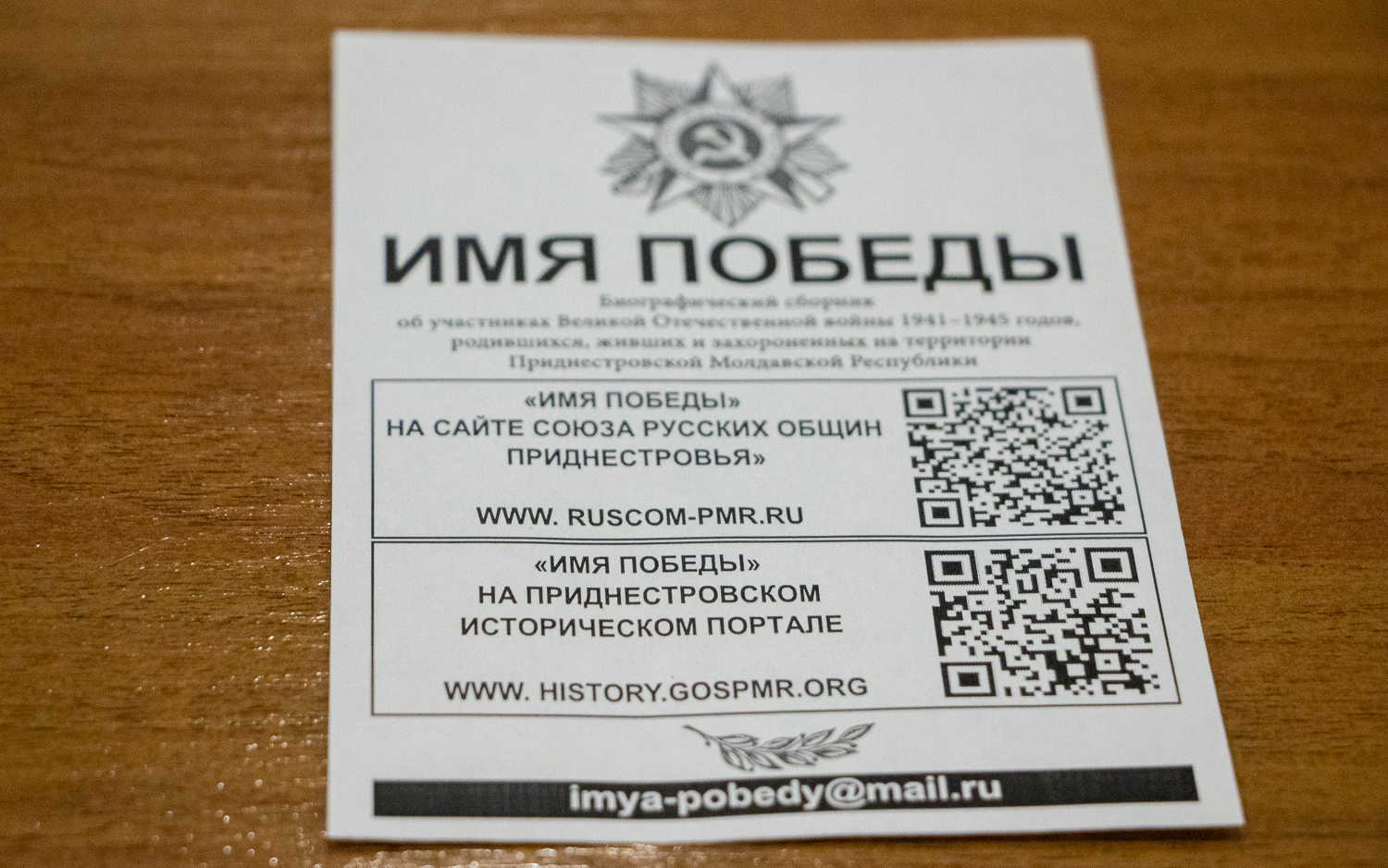 Напомним, что «Имя Победы» – это библиографический сборник об участниках Великой Отечественной войны 1941-1945 годов, родившихся, живших и захороненных на территории Приднестровья.