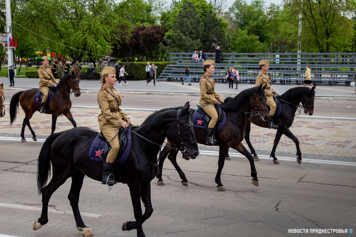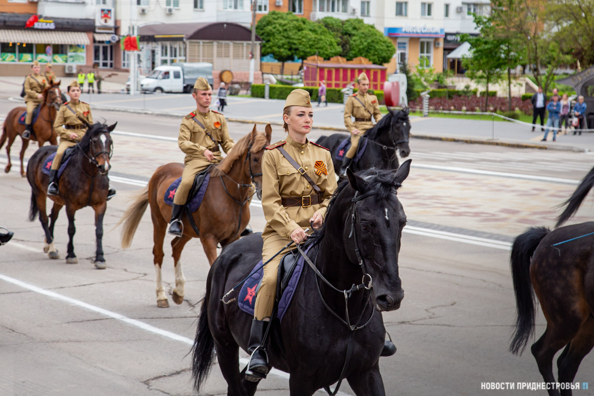 Новые программы продемонстрирует рота Почётного караула и Конно-парадный расчет МВД ПМР. В этом году на площадь выйдут 19 лошадей, их наездники – это ведомственные сотрудники служебного собаководства и коневодства. Всадники будут одеты в форму времён Великой Отечественной войны. Завершится торжественное шествие «Майским вальсом», который исполнят солисты ансамбля «Днестр» МВД ПМР и актёры театра драмы и комедии им. Н. С. Аронецкой.
