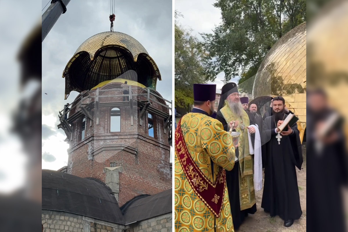 Купол увенчают крестом, который сегодня освятил архиепископ Тираспольский и Дубоссарский Савва.
