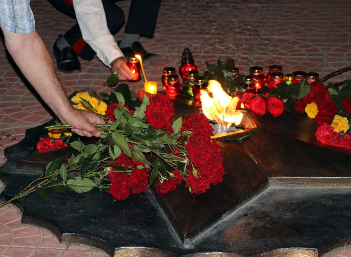Сегодня в 4 часа утра каменчане собрались у Мемориала Славы в городском парке, чтобы отдать дань памяти ветеранам Великой Отечественной войны, всем людям, чью жизнь оборвала война. Перед присутствующими выступили глава государственной администрации района и города Владимир Бычков и военный комиссар Каменского РВК Роман Васильев.
