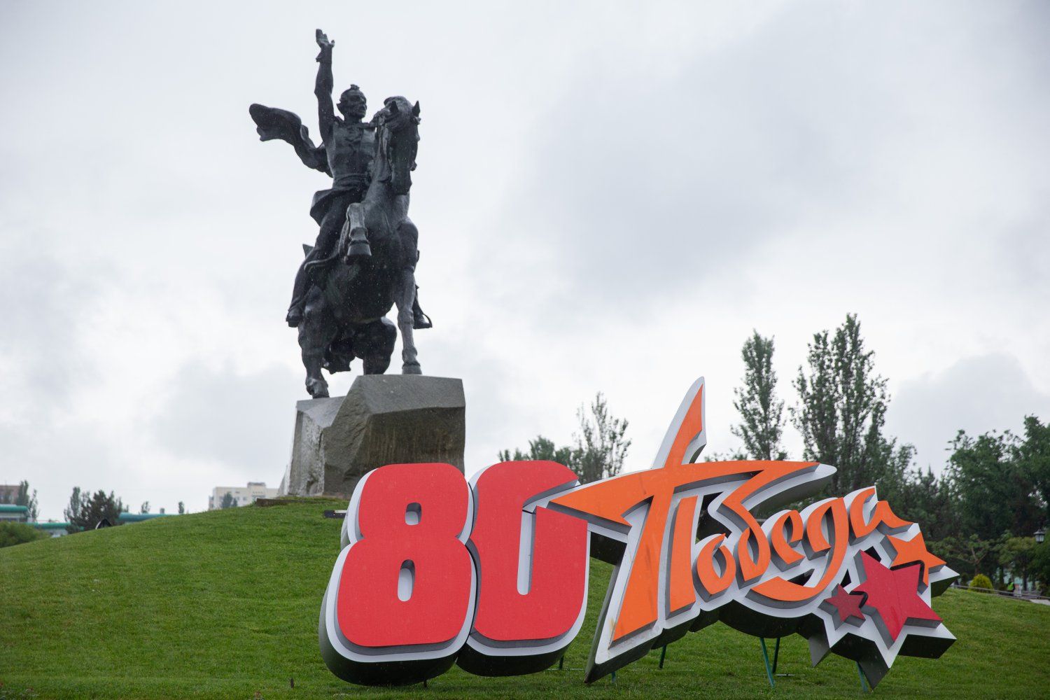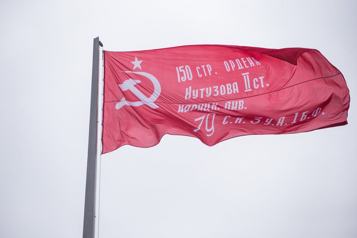 Тирасполь, 9 мая. /Новости Приднестровья/. На площади Суворова в Тирасполе в честь 80-летия Великой Победы под гимн Советского Союза подняли Знамя Победы. Это копия штурмового флага 150-й Идрицкой стрелковой дивизии, водруженного 30 апреля 1945 года бойцами Красной армии на здание Рейхстага в Берлине.
