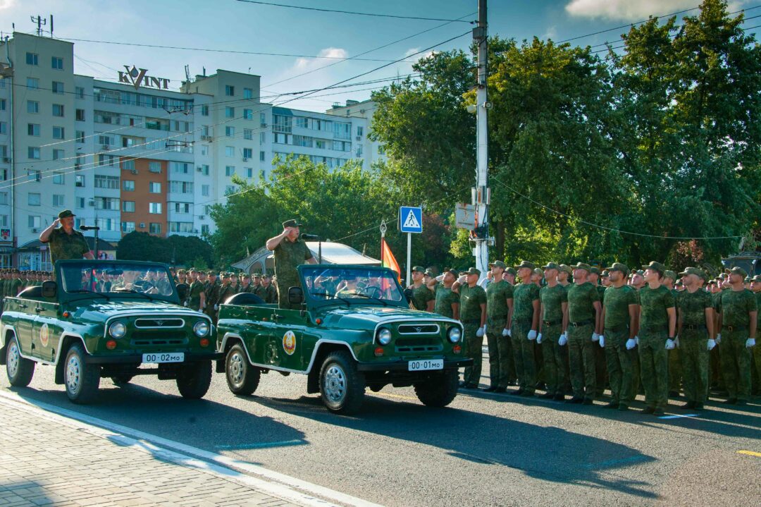 «Пешие парадные расчеты в большинстве состоят из военнослужащих, недавно призванных в Вооружённые силы. Им нужно привыкнуть к площади и прочувствовать атмосферу предстоящего события, для того чтобы уверенно пройти на параде в День Республики», – отметил заместитель министра обороны полковник Александр Доников.