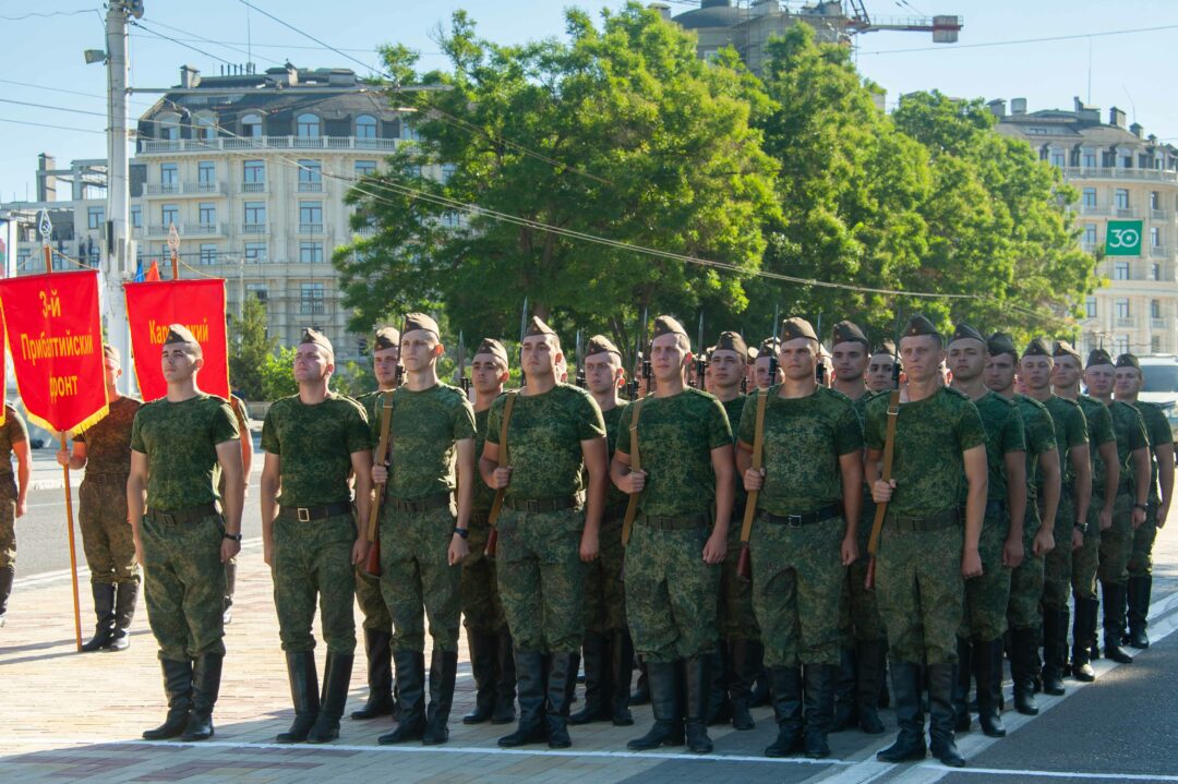 По традиции по площади пройдут курсанты Военного института Министерства обороны в форме времен Великой Отечественной войны. Лучшим юным защитникам доверено нести штандарты всех 13 фронтов Великой Отечественной войны.
