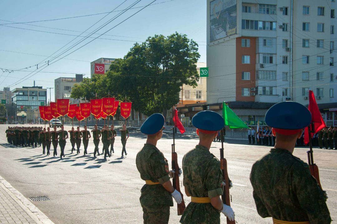 Тирасполь, 26 августа. /Новости Приднестровья/. На площади в столице прошла общая репетиция военного парада, посвящённого 30-летию Приднестровской Молдавской Республики и 75-летию Великой Победы. Тонкости предстоящего грандиозного действия сегодня отточили без участия военной техники, сообщает пресс-служба Минобороны.
