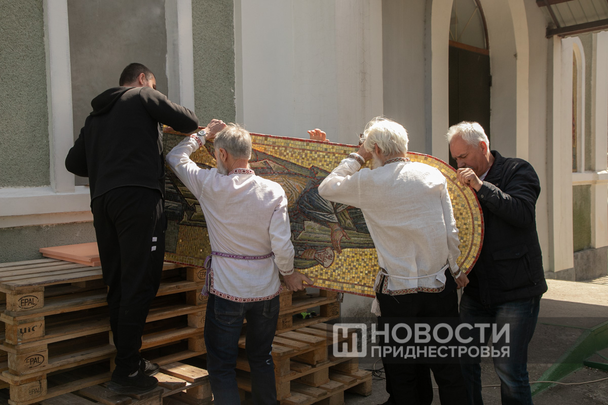 «Разговорились с художником Павлом Ивановичем Китаевым: мол, на стене, на камне обычно делают либо фреску, либо мозаику, - рассказал отец Василий. – Павел Иванович рассказал, что в Бендерском высшем художественном колледже наладили производство смальты. То есть стекла, из которого делают мозаику. Возникла идея обратиться в Бендеры».