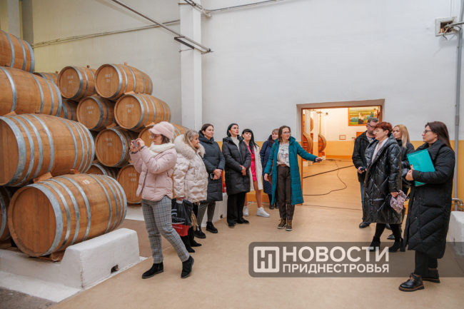 Тирасполь, 25 ноября. /Новости Приднестровья/. Комиссия конкурса «Приднестровское качество» сегодня побывала на заводе KVINT. Гостям показали цех производства коньяков. В основном корпусе принимают спирты, делают купажи, фильтруют их, подготавливают и затем подают на розлив.