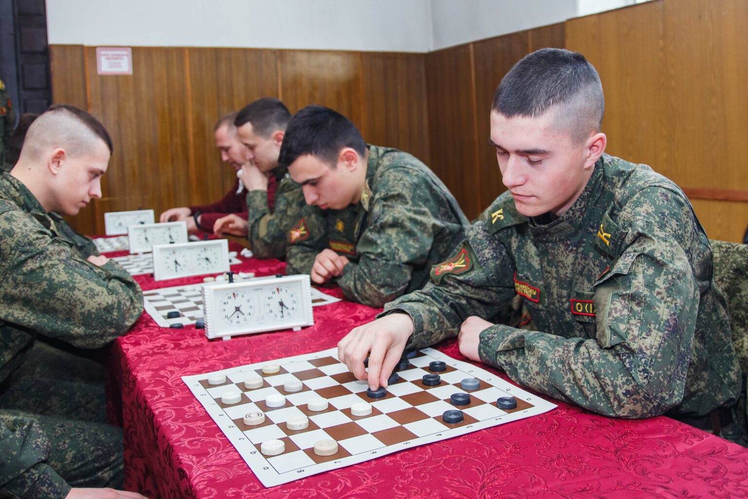 Военнослужащие соревновались в метании гранаты на дальность, легкоатлетической эстафете, армрестлинге, дартсе и перетягивании каната. Курсанты играли в мини-футбол, а также сразились в шашечных поединках.