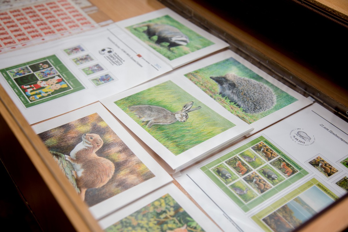 О филателистической экспозиции директор издательства «Марка Приднестровья» Всеволод Лаврентьев рассказал, что на ней представлены марки и эскизы марок республики разных лет. Также присутствовали экспонаты из его личной коллекции, в том числе первая марка мира.