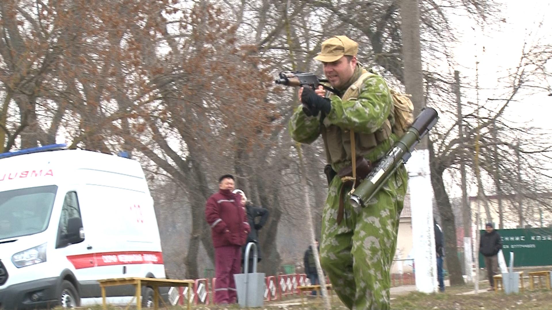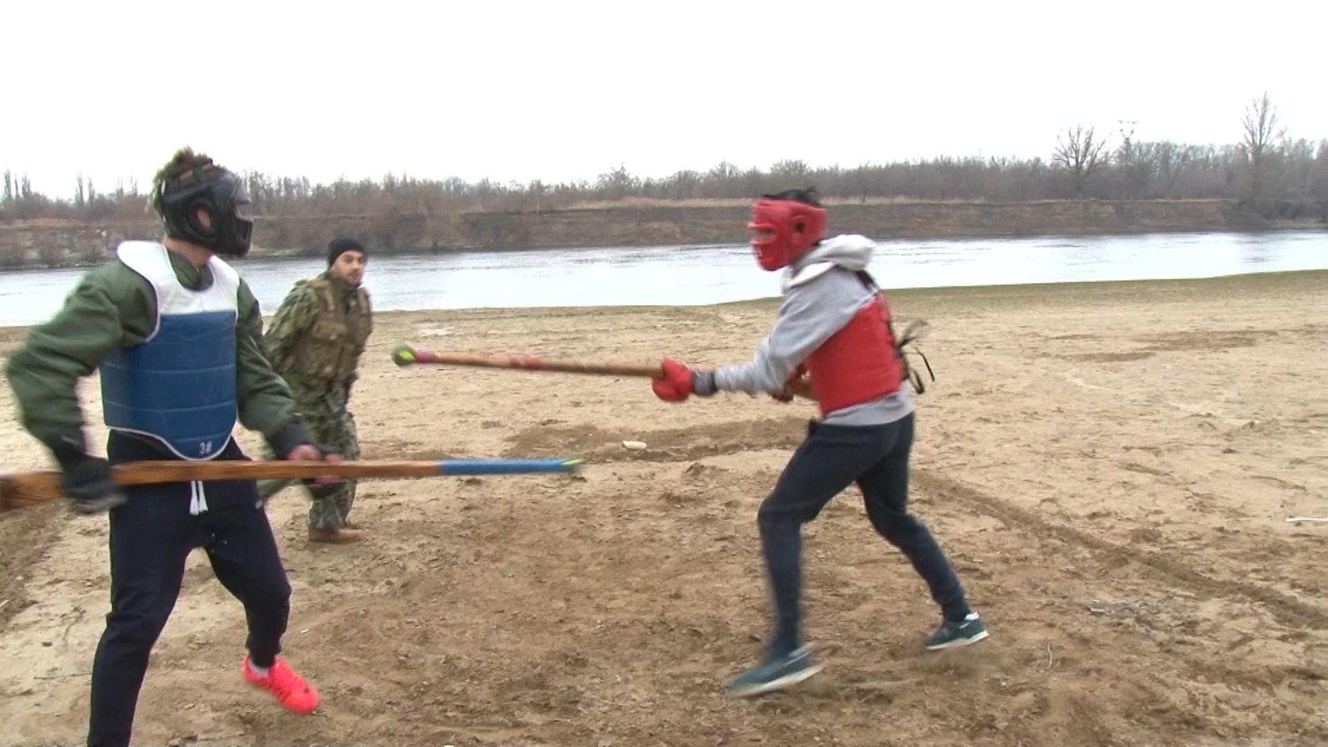Несмотря на холод и праздничную дату, принять участие в эстафете пришли десятки юношей. После сдачи норм ГТО все желающие могли попробовать свои силы в штыковом бою – фехтовании на карабинах.