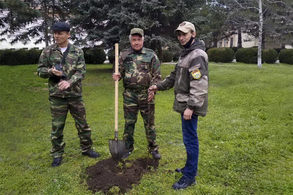 Всего было 30 саженцев. Из деревьев – это липы, павлонии, клены, березы, ясень и голубая ель, из кустарников – гибискус, пиракант, магония, юкка, форзиция и можжевельник казацкий.