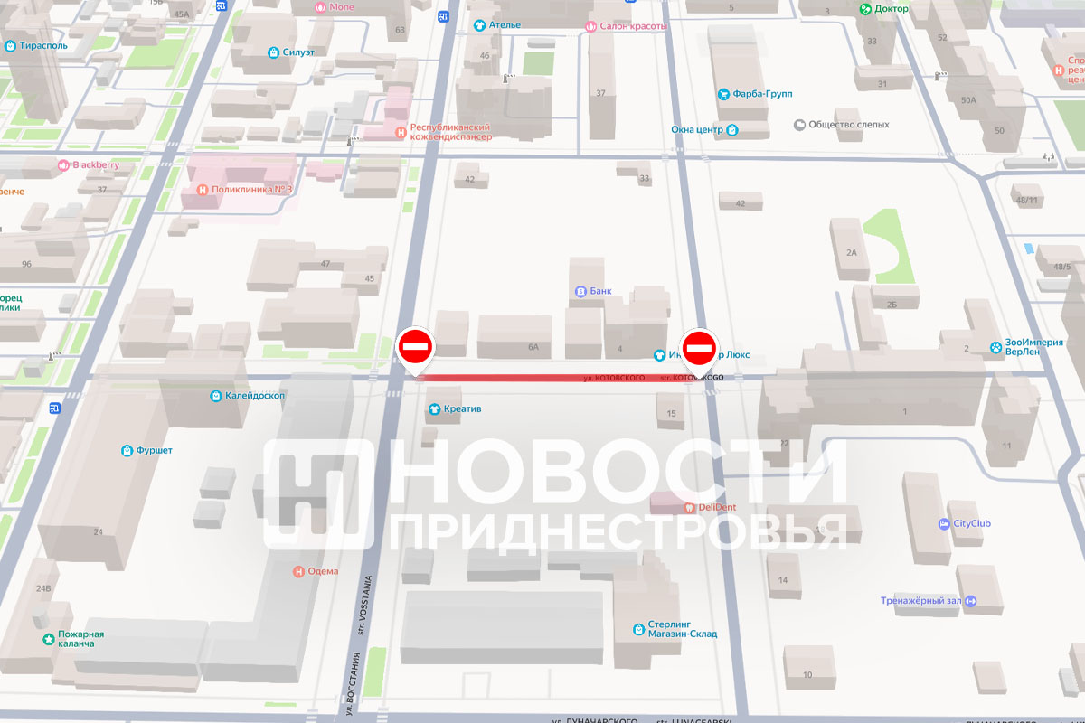 Тирасполь, 18 июля. /Новости Приднестровья/. В Тирасполе на улице Котовского – на участке от ул. Горького до ул. Восстания – частично ограничено движение транспорта.