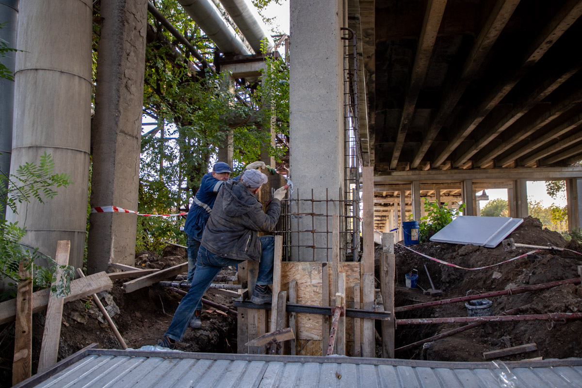 «К сегодняшнему дню они выполнили 1 ряд колонн – усилили колонны полностью на всём правом ряду, это 12 штук. Сейчас они работают на этой стороне, возле объездной дороги. Пока мы можем работать без перекрытия моста, ограничили только нагрузку – проезд грузовых машин, оставили только троллейбусы и легковые машины. Сейчас проводятся работы на левой стороне, здесь 15 штук. Надеемся, что на этой неделе подрядчик завершит их укрепление, и мы вернёмся на другую сторону», – рассказал заместитель главы Госадминистрации Тирасполя по вопросам ЖКХ Николай Обручков.