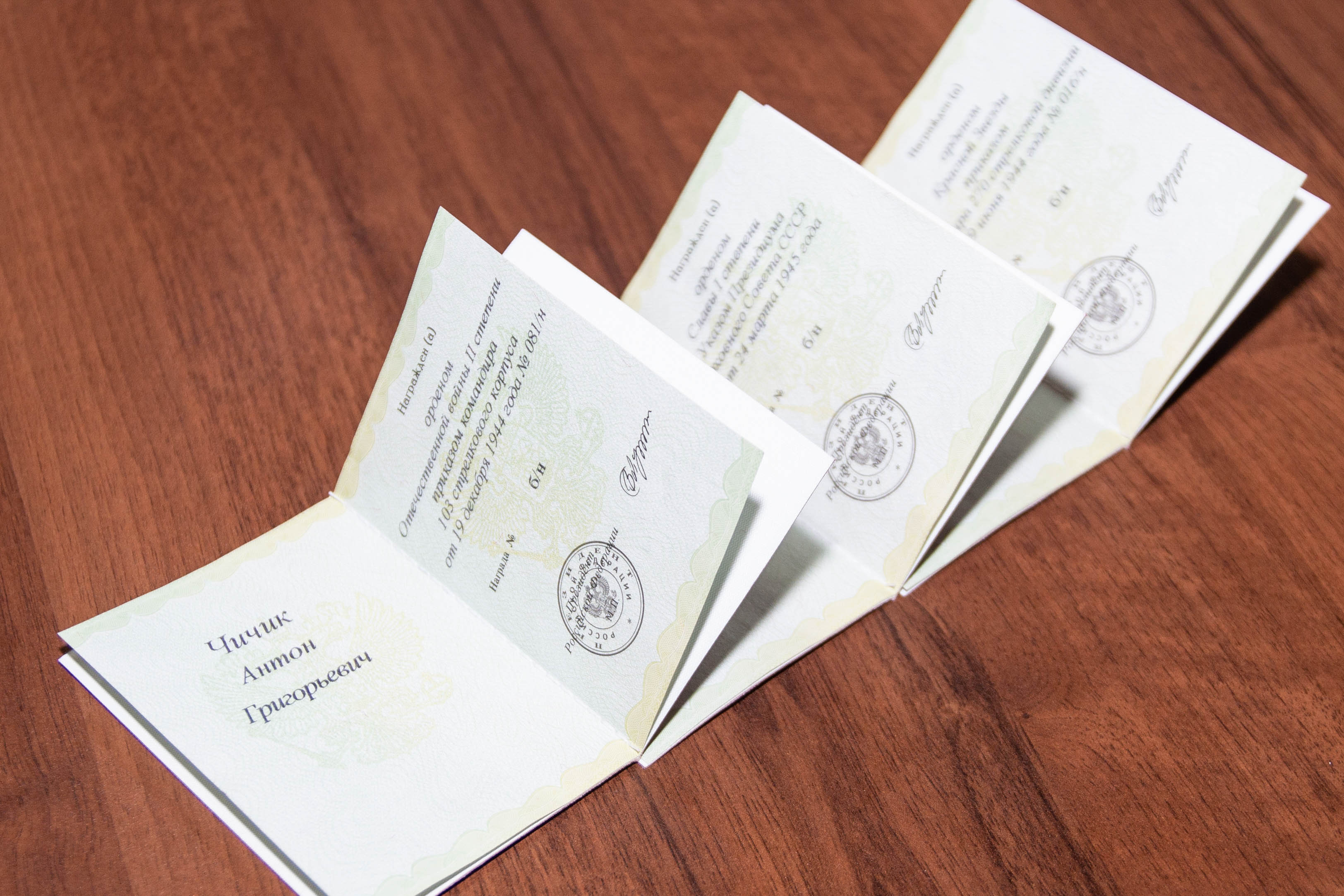 Награды Антона Чичика и документы о его подвигах переданы семье героя