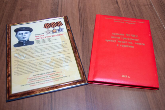 Торжественная церемония передачи всех материалов двоюродному брату Антона Чичика Алексею Гунько состоялась в присутствии офицеров Вооружённых сил Приднестровья и юных суворовцев, сообщила пресс-служба Минобороны.