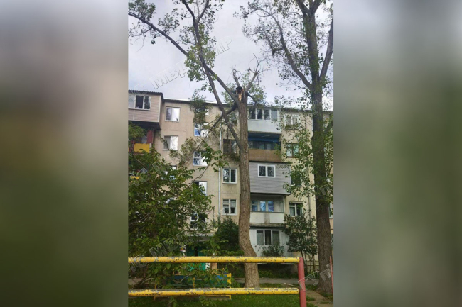 Поваленные из-за сильного ветра деревья повредили электропровода, балконы жилого дома и автомобиль