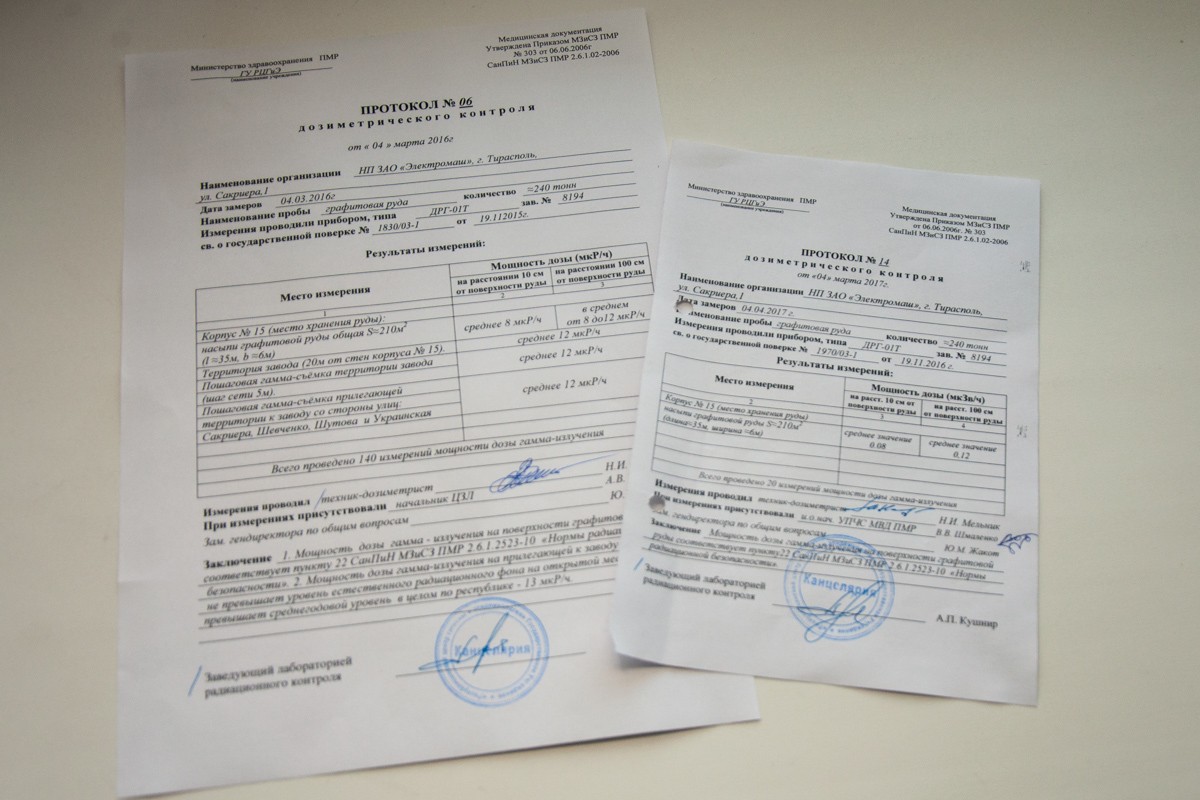 Так ли это, решили узнать и корреспонденты ПГТРК. Первый, кого мы посетили, был инженер-физик лаборатории радиационного контроля Республиканского центра гигиены и эпидемиологии Анатолий Петровский. Он рассказал, что проверки радиационного фона графита проводились несколько раз, и показал два документа — акты соответствующих комиссий (последний датирован 4-м апреля 2017-го). Оба говорят о том, что фон — в норме.