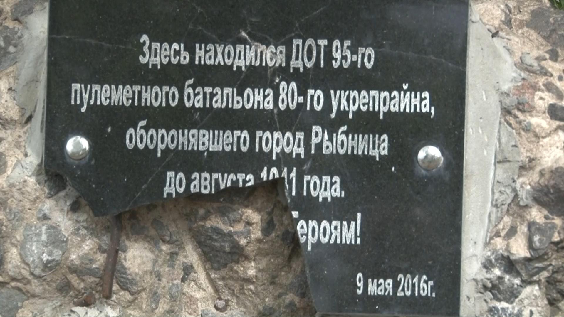 Неизвестные разбили памятную табличку на ДОТе в Рыбнице