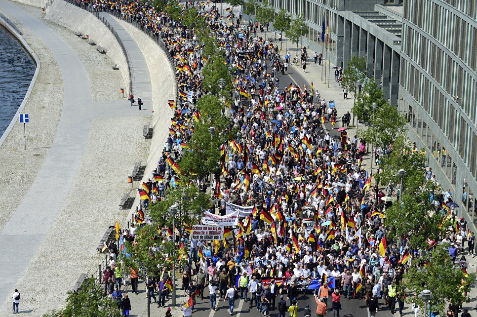 Более 25 тысяч человек приняли участие в протестных акциях в Берлине, передаёт РИА «Новости». Один из митингов организовала правая партия «Альтернатива для Германии» (АдГ), в нем приняли участие более пяти тысяч человек. Под лозунгом «Будущее для Германии» они требовали пересмотра миграционной политики и прекращения «исламизации» страны.