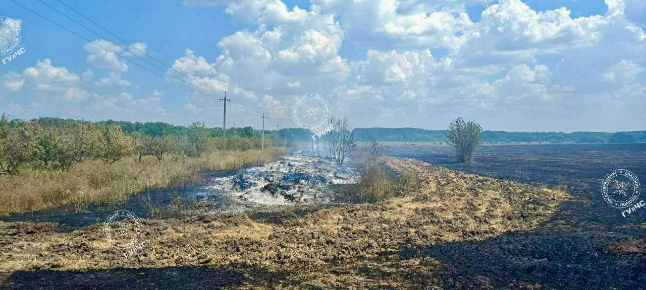 Пострадало поле стерни (51 гектар) и ещё около 9 гектаров заброшенного яблоневого сада, который готовили под выкорчёвывание.