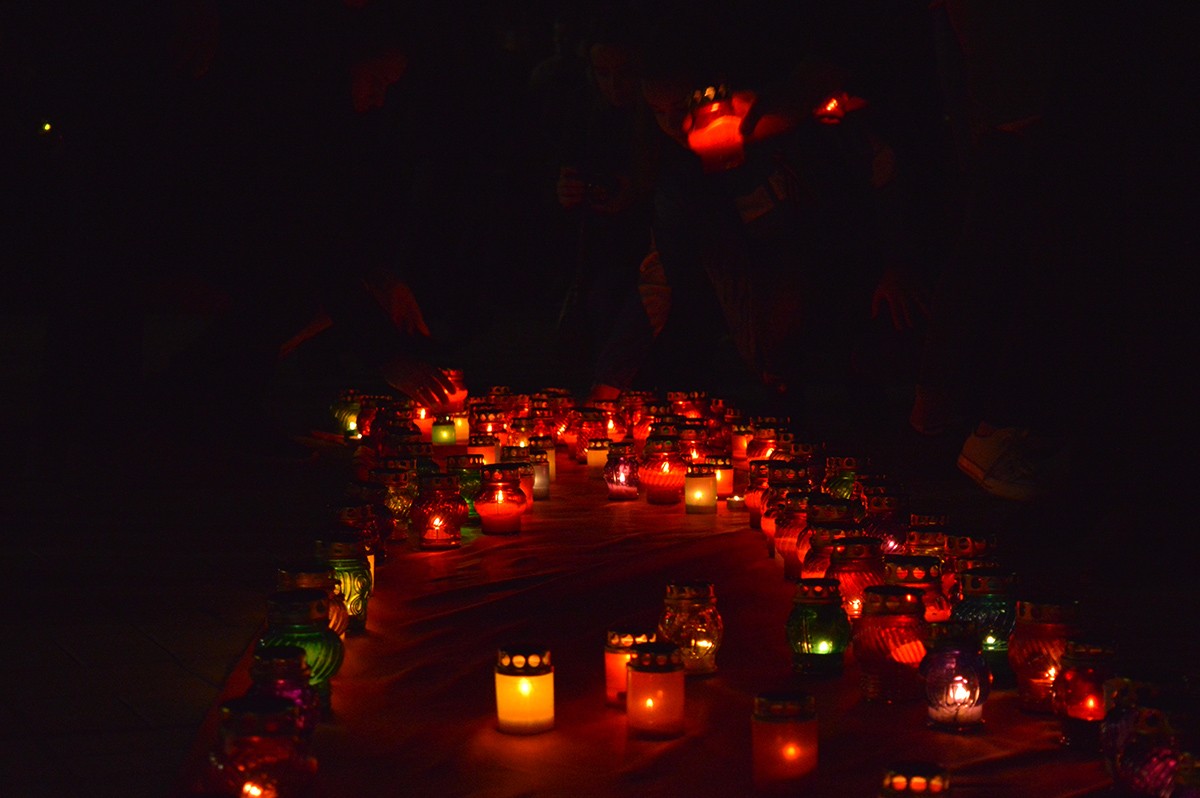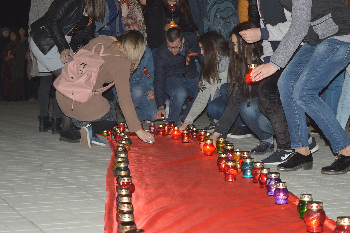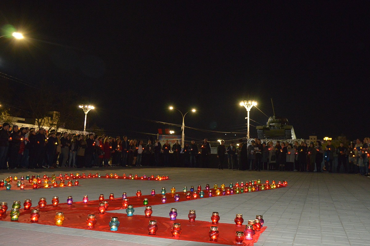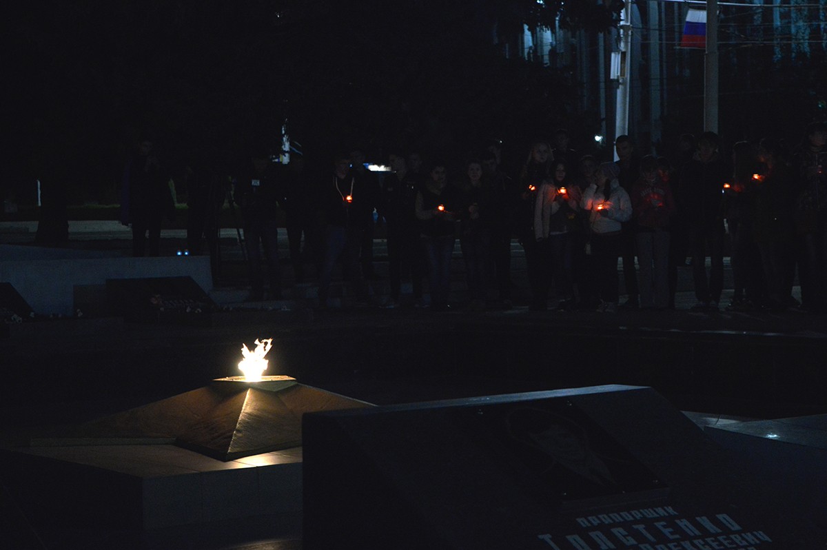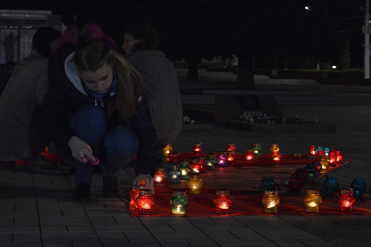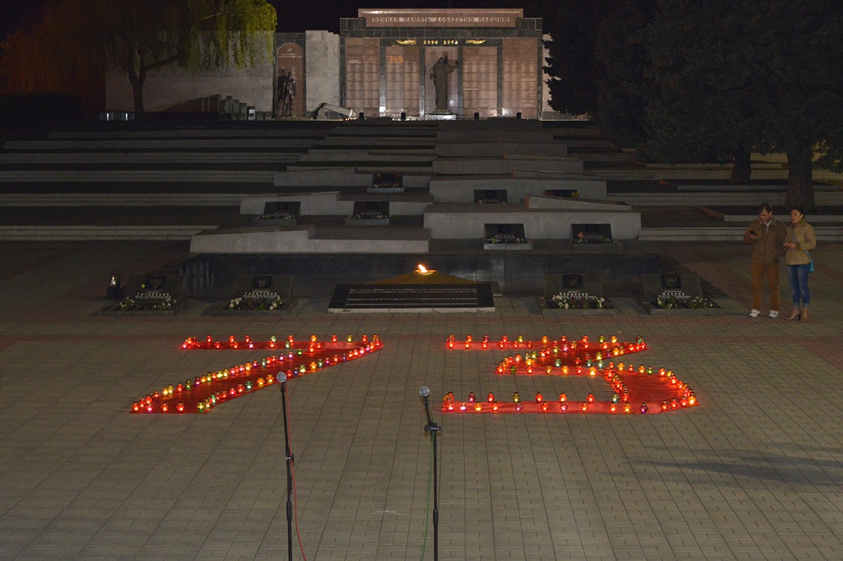 Память тех, чьи жизни унесла война, почтили минутой молчания, а затем собравшиеся выложили из зажженных лампад огромную цифру — 73, — символизирующую количество лет прошедших с момента освобождения Тирасполя от оккупантов.