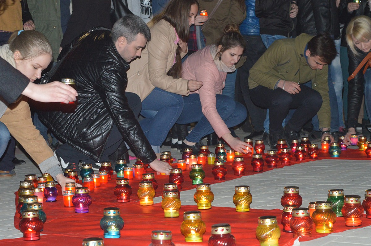 Акция «Свеча памяти» проходит в столице Приднестровья уже в четвертый раз. Традиционно свечи и лампады к Мемориалу Славы приносят 11 апреля — накануне дня освобождения города. Однако на эту дату приходится также и международный день освобождения узников фашистских концлагерей. Эта дата установлена по инициативе Организации Объединенных Наций в память об интернациональном восстании заключенных самого крупного концентрационного лагеря "Бухенвальд" в марте 1945 года. Когда 11 апреля в концлагерь Бухенвальд вошли войска союзников, восставшие уже осуществляли полный контроль над лагерем смерти.