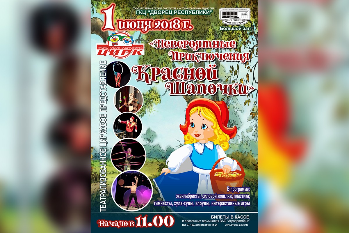 Тирасполь, 30 мая. /Новости Приднестровья/. В пятницу, 1 июня, в большом зале Дворца Республики состоится масштабное цирковое представление «Невероятные приключения Красной Шапочки», подготовленное Приднестровским государственным цирком.