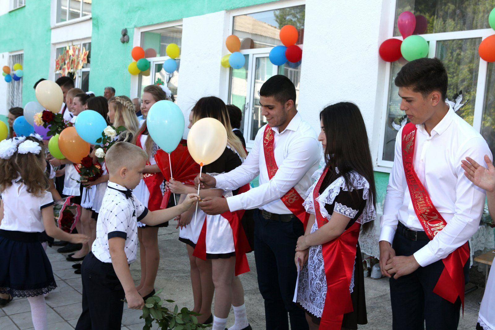 Не обошлось сегодня и без школьного вальса. Затем ребята выпустили в небо шары, загадав свои самые сокровенные желания. В завершении торжественной линейки выпускники под аплодисменты сделали круг почета и отправились на местный мемориал, чтобы возложить цветы воинам-освободителям села.