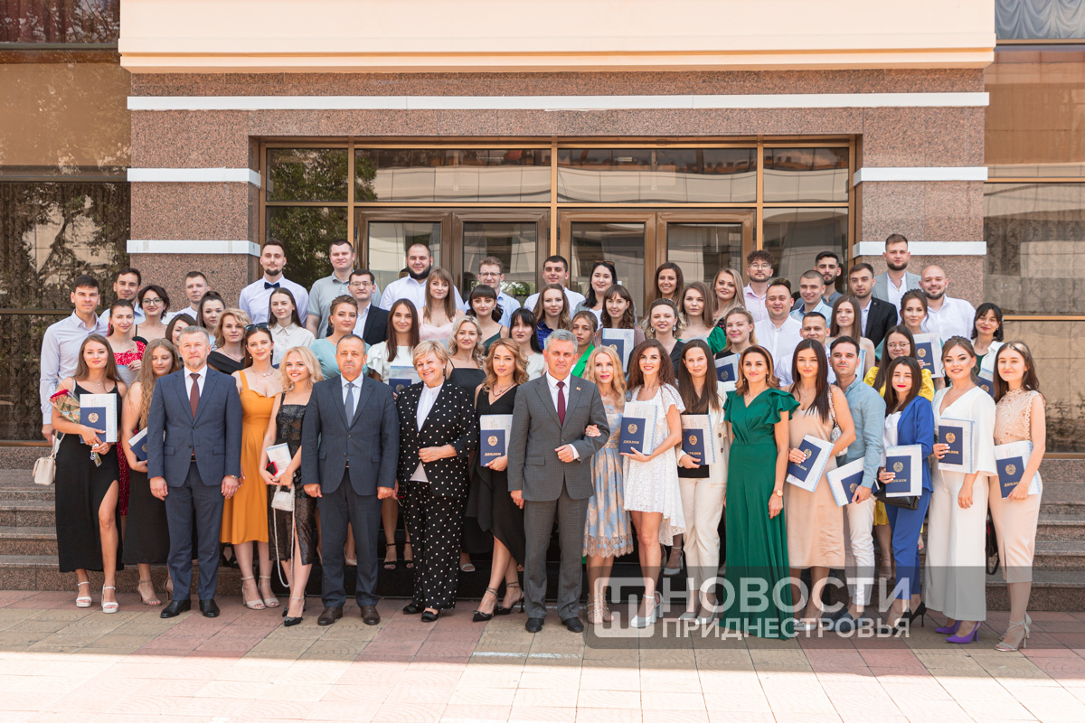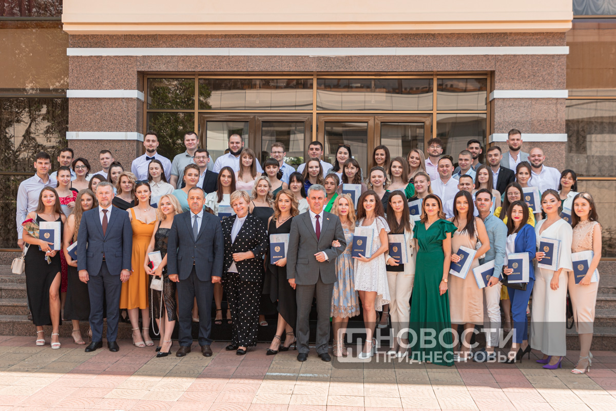 В торжественной церемонии вручения дипломов приняли также участие председатель Правительства ПМР Александр Розенберг, вице-спикер законодательного органа республики Галина Антюфеева, министр здравоохранения Кристина Албул, ректор госуниверситета Владислав Соколов. Поддержать теперь уже дипломированных ординаторов прибыли главные врачи медицинских учреждений Приднестровья, руководители практики, декан и преподаватели медицинского факультета ПГУ, представители Минздрава и родственники выпускников. В их адрес было сказано много теплых слов. А в завершении мероприятия – общее фото на память.