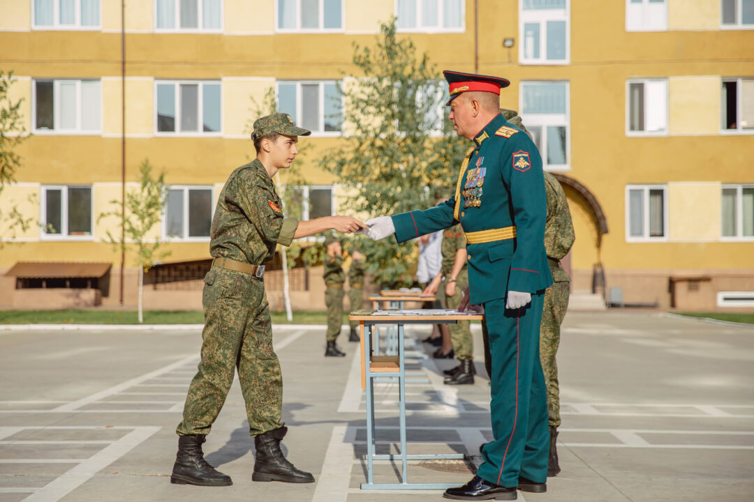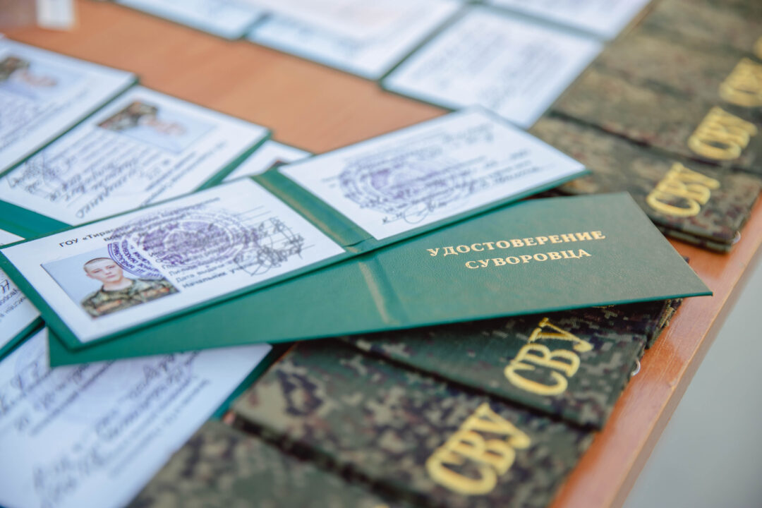 Новобранцам Суворовского училища вручили удостоверения и погоны