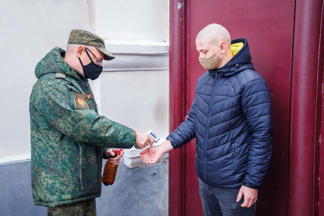 Перед отправкой в воинскую часть с призывниками провели беседу, проверили документы, измерили температуру и провели дезинфекцию рук. После чего новобранцы, признанные годными к прохождению службы, оправились на сборный пункт.