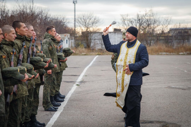 После принятия присяги, командиры произнесли слова напутствия, а войсковой священник благословил новобранцев на ратную службу.
