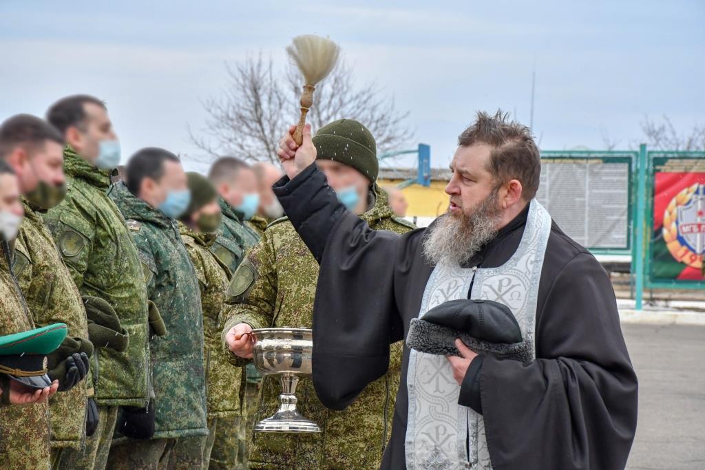 Окропил святой водой и благословил новобранцев на службу войсковой священник Вадим Трощинский, сообщает пресс-служба МГБ. В своем напутствии он пожелал им с достоинством выполнять воинский долг и стать гордостью для родителей.
