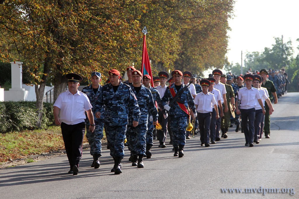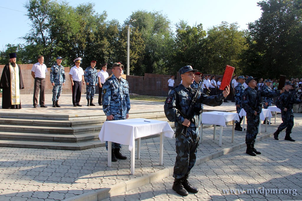 Тирасполь, 26 августа. /Новости Приднестровья/. В Специальной моторизованной войсковой части Министерства внутренних дел состоялась торжественная церемония приведения молодого пополнения к Военной присяге. Мероприятие началось на плацу СМВЧ с выноса знамени. Оттуда во главе с первым заместителем министра внутренних дел Сергеем Левинским и командиром подразделения Денисом Георгицей личный состав и новобранцы части в пешем порядке выдвинулись к мемориалу Славы села Парканы.