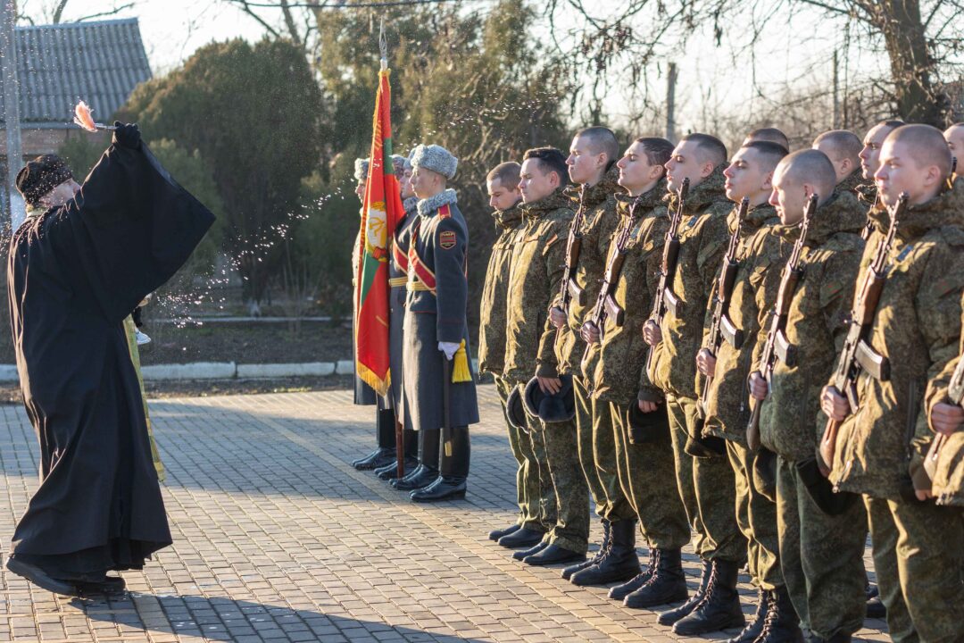 После принятия присяги войсковой священник благословил новобранцев на ратную службу, а командиры произнесли слова напутствия.
