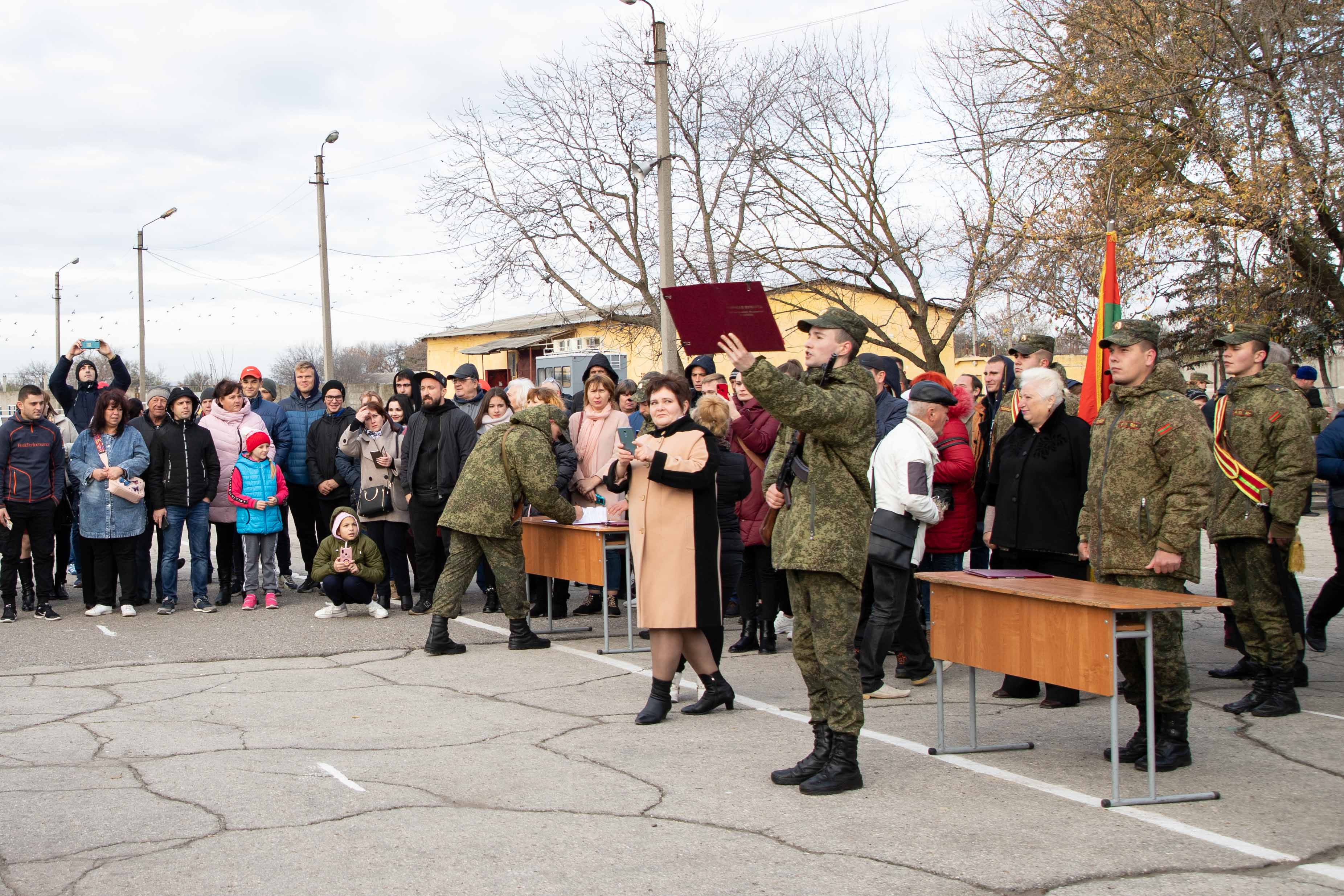 Тирасполь, 2 ноября. /Новости Приднестровья/. В одной из воинских частей прошла торжественная церемония принятия Военной присяги. Клятву на верность Родине произнесли артиллеристы, мотострелки, сапёры, а также молодое пополнение спецназа и роты Почётного караула, сообщает пресс-служба Минобороны ПМР.