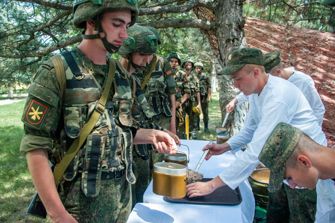 После выполнения нормативов новобранцев ждал сытный обед в полевых условиях.
