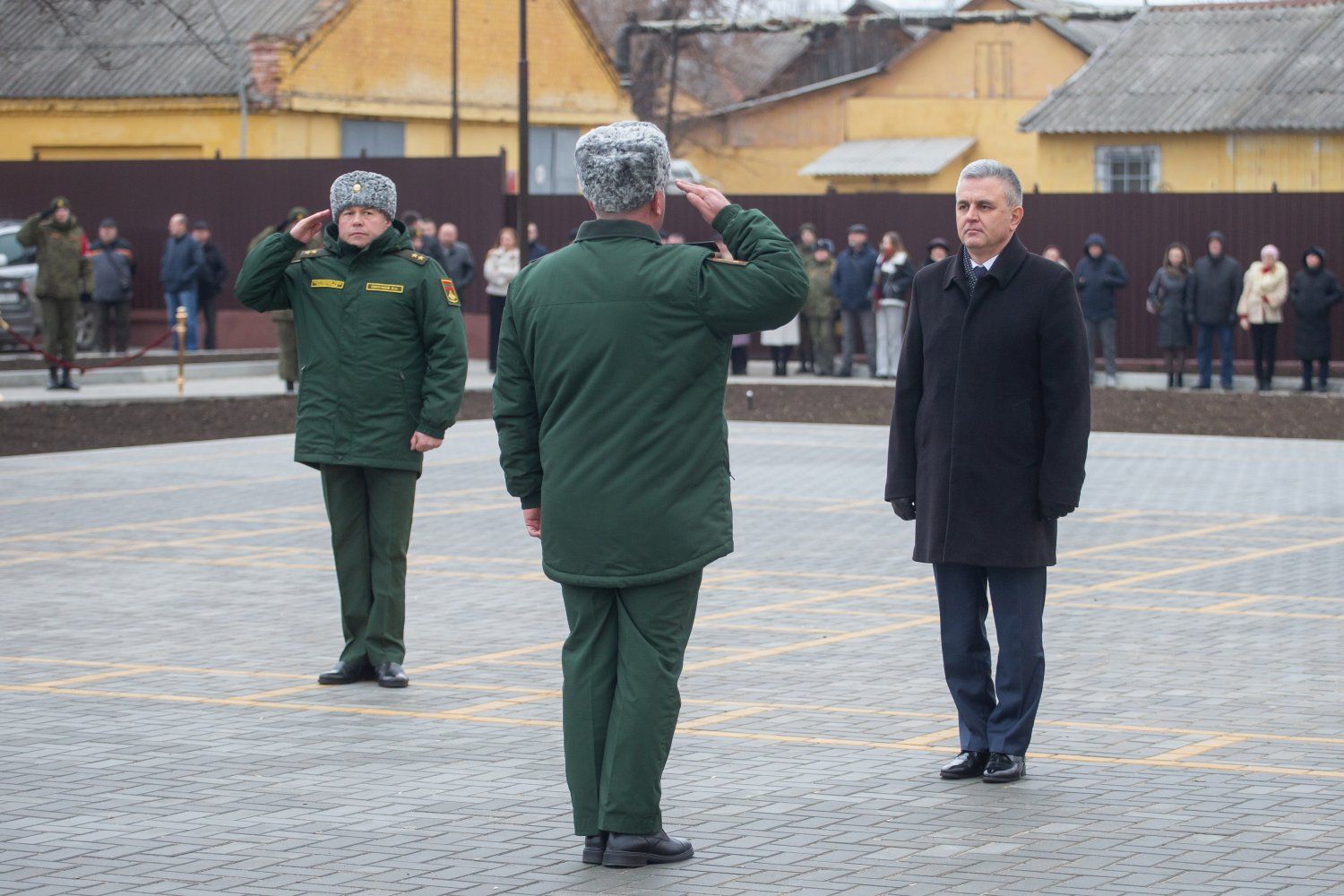 Выбранное место не только логистически, но и исторически соответствует профилю учебного заведения. Ранее на этой площадке располагался первый батальон Республиканской гвардии, позже – подразделение Тираспольского гарнизона. Президент посещал часть с инспекцией в 2019 году. Казарменные помещения требовали срочного внимания. Рядовым ремонтом положение дел было не исправить. Руководитель страны поручил возвести новое здание. Затем назрело еще более кардинальное решение – перевести сюда институт. Проект скорректировали. Несколько лет серьезных строительных работ, внушительные финансовые вложения из госбюджета (свыше 42 миллионов рублей). Сегодня состоялась официальная сдача объекта в эксплуатацию. На новом плацу – порядка 250 человек в военной форме: курсанты института – очники и заочно обучающиеся, офицерский состав, выпускники Тираспольского Суворовского училища, музыканты главного штаба Вооруженных сил ПМР. На трибуне – почетные гости, среди которых Главнокомандующий ВС ПМР Вадим Красносельский.