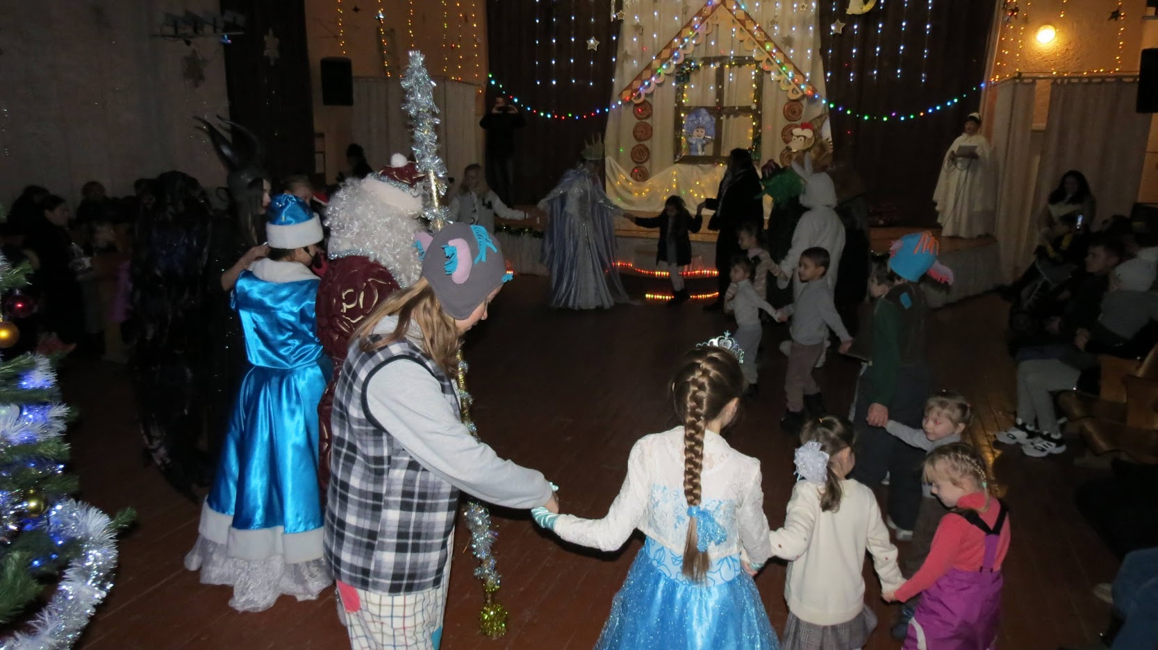 Для детей и гостей праздника было подготовлено увлекательное театрализованное представление с участием традиционных сказочных персонажей. Неожиданным сюрпризом стало появление злой феи Малефисенты с троллями и вороном, которые сначала пытались испортить праздник, но затем присоединились к общему веселью. Ребята с удовольствием водили хороводы вместе с Дедом Морозом и Снегурочкой, участвовали в играх, читали стихи, пели песни и получали небольшие сувениры за активное участие.