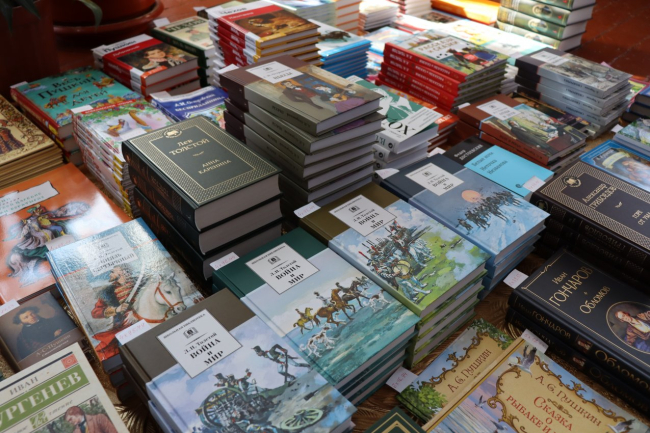 Среди представленной литературы – русская классика и современные издания об истории Москвы, о Великой Отечественной войне, об известных деятелях культуры, а также детские книги.