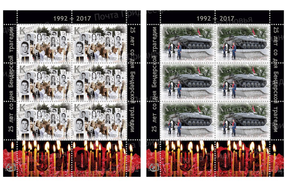 Серия из 4-х марок «25 лет Бендерской трагедии» выпущена тиражом 4 200 серий, сообщил директор ГУП «Издательство „Марка Приднестровья“» Всеволод Лаврентьев.