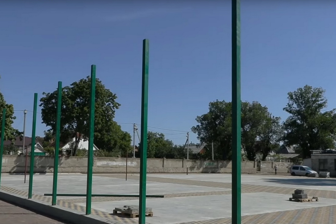 Строительные работы в самом разгаре. Сейчас специалисты возводят ограждение для мини-футбольного поля, а скоро привезут и само покрытие. На волейбольном и баскетбольном полях осталось сделать разметку, повесить сетку и кольца. Вокруг делают беговые дорожки.