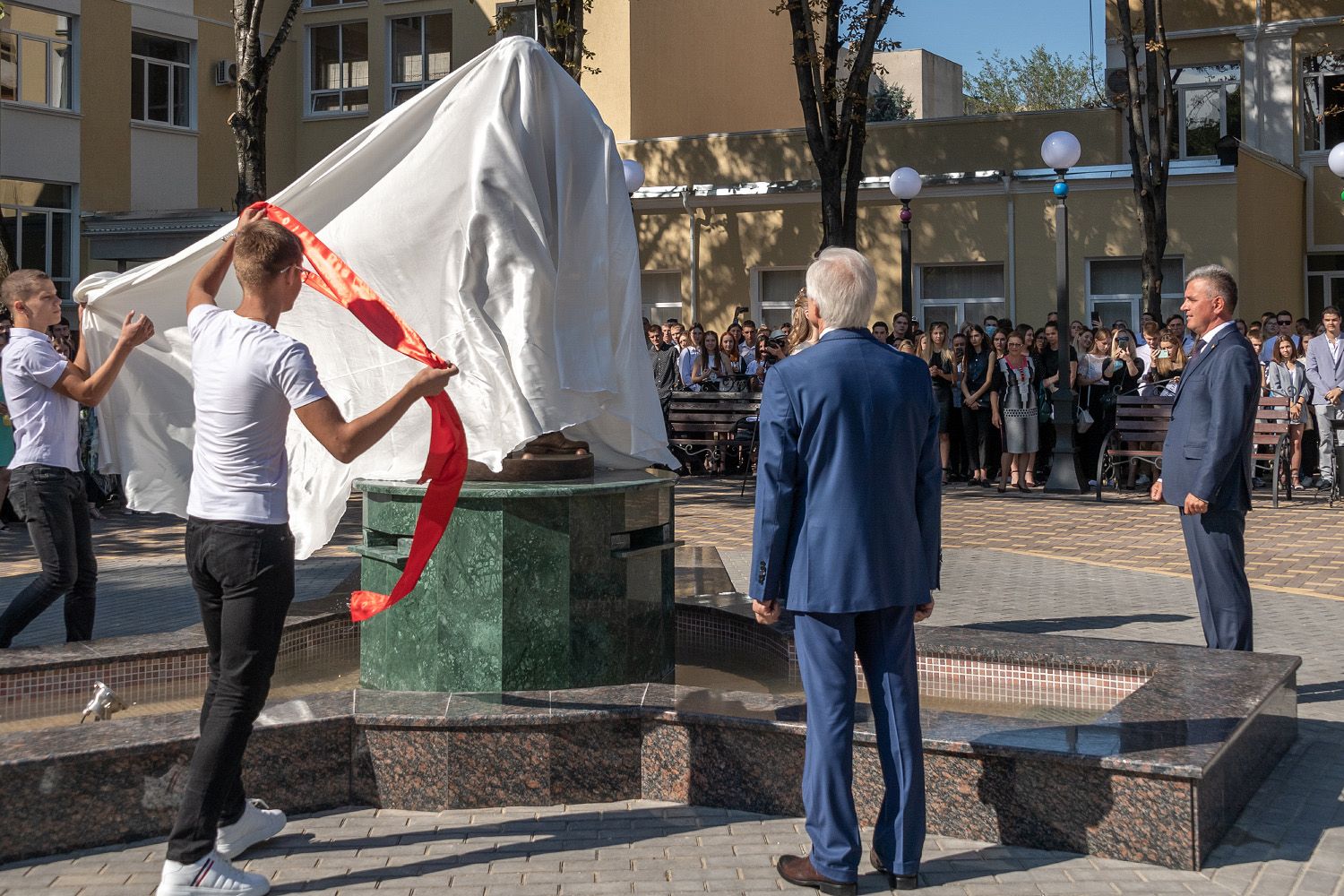 Тирасполь, 1 сентября. /Новости Приднестровья/. День знаний Приднестровский государственный университет им. Т. Г. Шевченко встретил в обновлённом виде. Фасады корпусов отремонтировали, студенческий сквер благоустроили. Также появились новые объекты: фонтанный комплекс со статуей студента и вращающаяся эмблема ПГУ на главном корпусе.