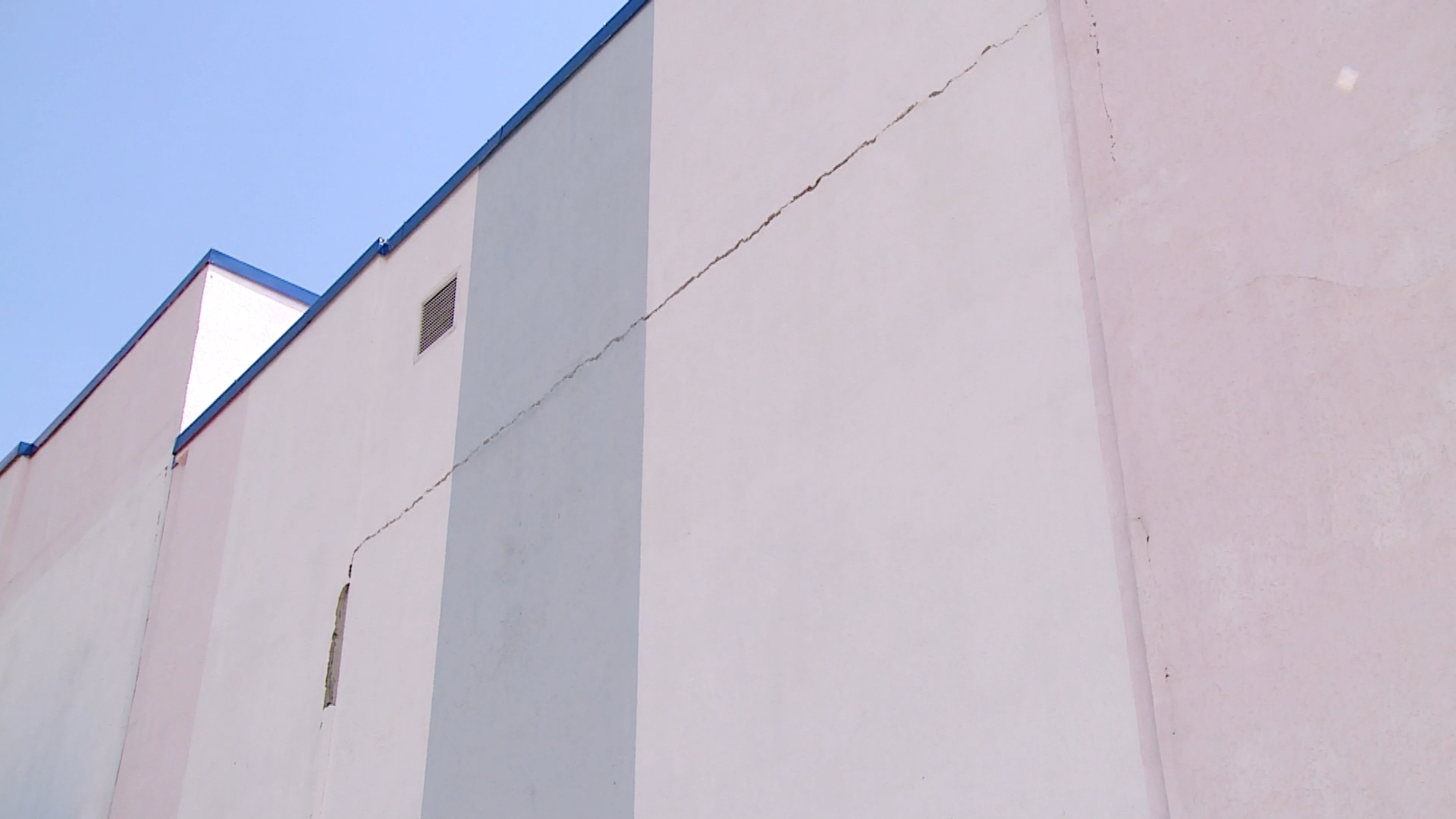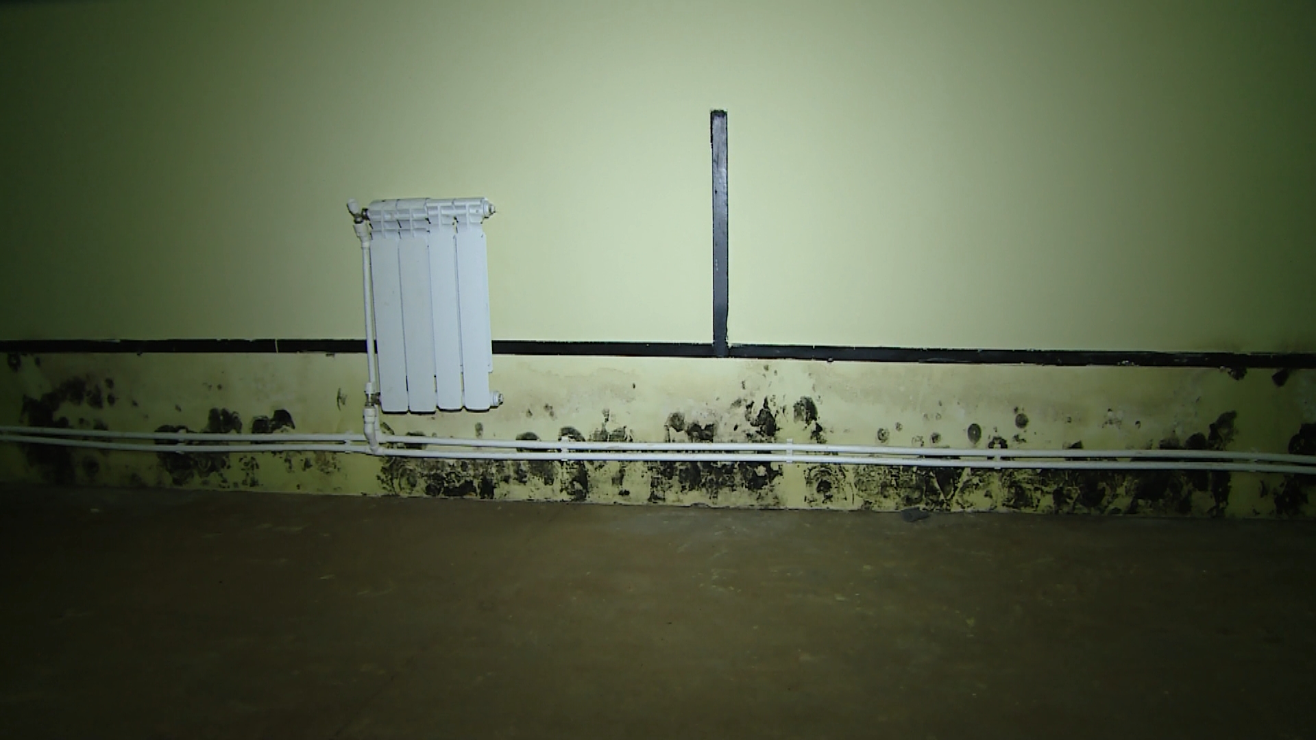 Ещё одна серьёзная проблема – это просадка здания. Из-за неё образуются щели, в которые попадает вода. По этой причине на стенах в спортзале и в подвальном помещении появились следы влаги, а в подвале – плесень. По словам администрации школы, некоторые пятна плесени и влаги образовались относительно недавно. Комиссия отметила, что этот факт говорит о прогрессировании дефектов.