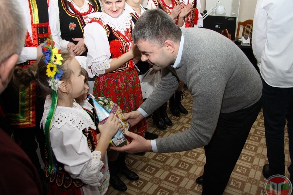Тирасполь, 30 декабря. /Новости Приднестровья/. Представители Общества польской культуры «Ясна Гура» поздравили коллектив ГУ «Приднестровская газета» с наступающим Новым годом и Рождеством. Парни и девушки в национальных костюмах исполнили рождественские колядки на украинском, русском и польском языках под гитару.