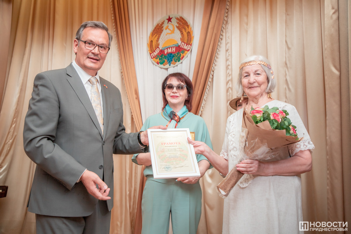 Анатолий Калинин вручил Тамаре Ломтевой почетные грамоты уполномоченного по делам религий и национальностей Республики Беларусь и посольства Республики Беларусь в РМ.