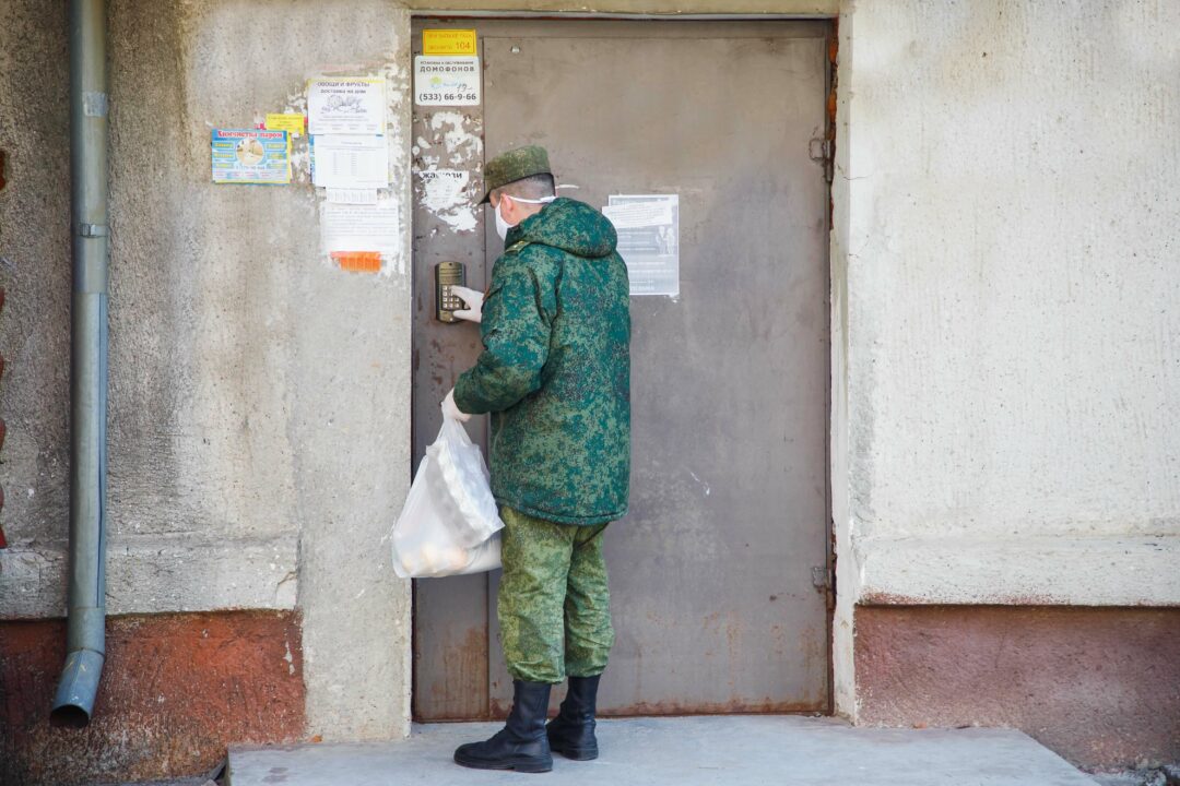 Офицеры Суворовского училища помогают пожилым людям во время карантина