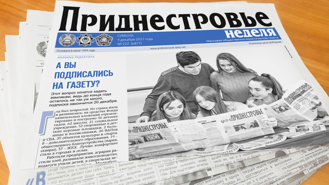 Оформить подписку на газету «Приднестровье» можно до 20 декабря