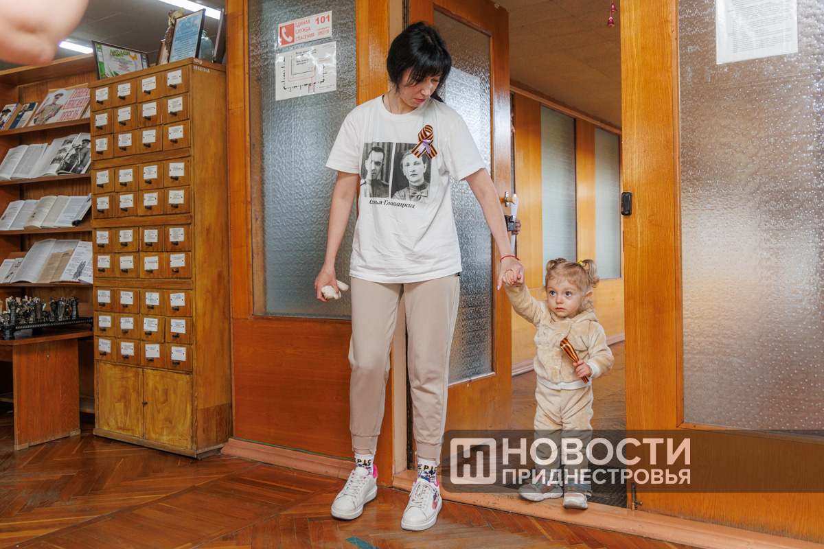 Бендерчанка Анна пришла на Диктант Победы с маленькой дочкой. Еве ещё нет и двух лет, но её уже приобщают к семейным ценностям.