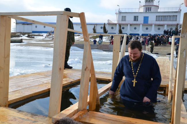Днестровск, 20 января. /ИА «Новости Приднестровья»/. Накануне в Днестровске по окончании праздничной службы в храме святых равноапостольных Кирилла и Мефодия в честь праздника Крещения Господня протоиерей Евгений провел традиционный обряд освящения воды в Кучурганском лимане. Затем около двухсот днестровцев совершили омовение в купели, оборудованной на территории яхт-клуба.
