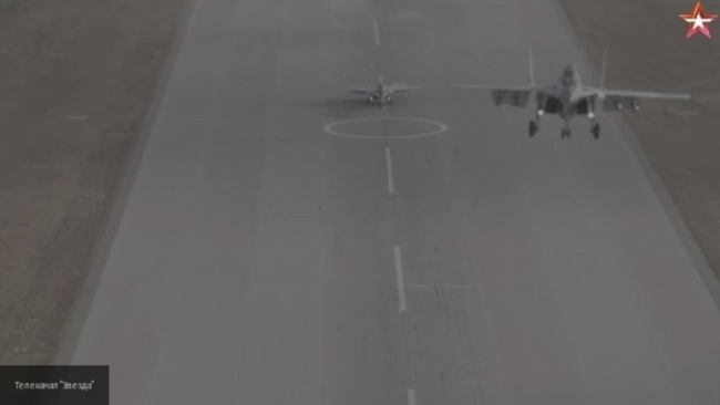 Также издание опубликовало «первую воздушную съемку» и кадры «ювелирной посадки» истребителя МиГ-35.